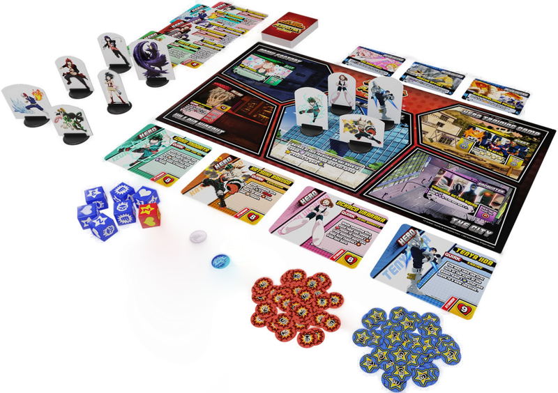 In the My Hero Academia: Plus Ultra! Board Game, you and the other players control students from U.A. High's Class 1-A. Prove that you have what it takes to be a Pro Hero by earning hero points. Defeating villains, completing events, recruiting allies, and resolving encounters all reward you with hero points. Supporting the other heroes will, of course, also reward you with hero points. The game ends after a hero earns 20 or more hero points, at which point the hero with the most hero points wins.