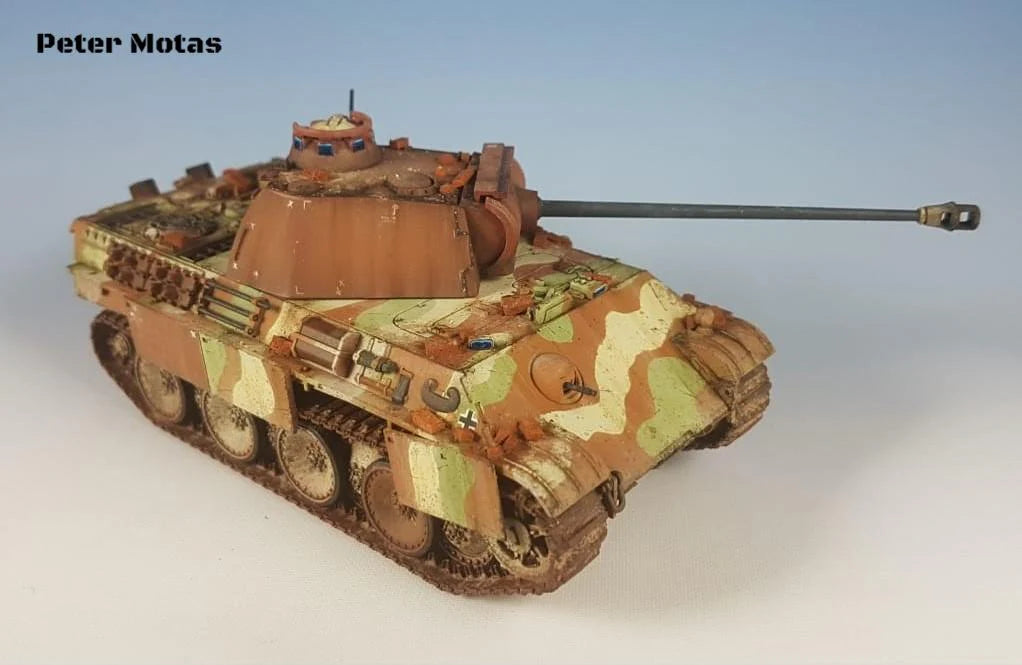 This model kit depicts the late version of the Panther tank. About 3,000 were produced between March 1944 and April 1945. With this kit, you can assemble a Panther Ausf G with optional air cooler and rear exhaust choices, with or without side armour.