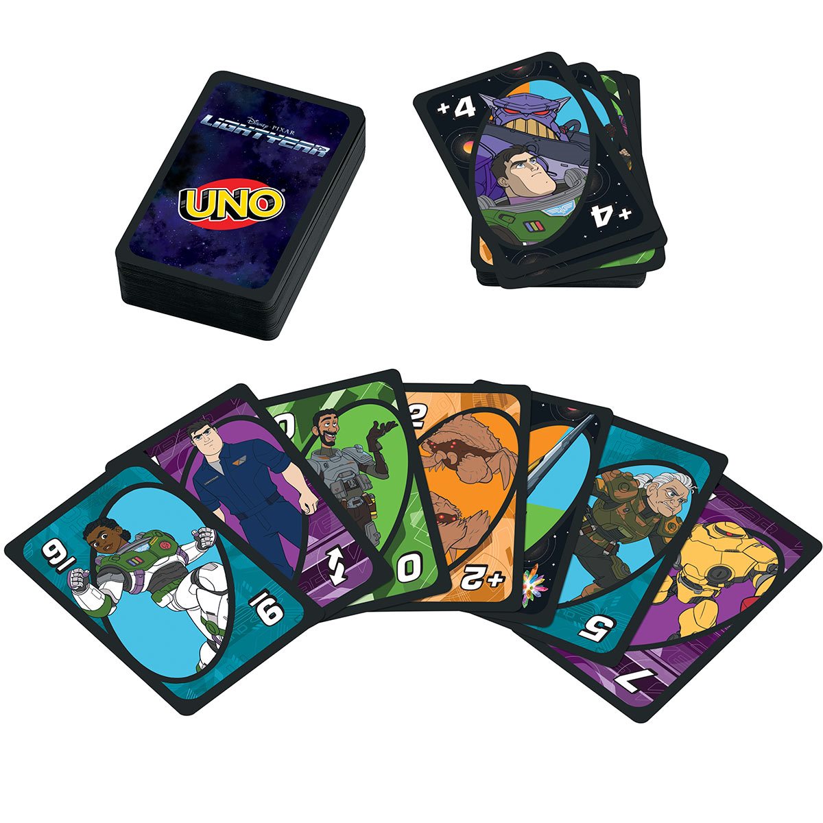 • UNO Lightyear features a deck decorated with graphics from the space adventure movie!